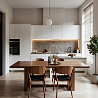 Die KI wurde auf Basis der Arbeiten führender Designer, Architekten und Fotografen trainiert – für Bilder mit herausragender Ästhetik und professionellem Anspruch. Ob Wohnzimmer, Küche, Schlafzimmer oder Bad - moderne Raumkonzepte in verschiedenen Designs und Farbstimmungen, hell und freundlich gestaltet.